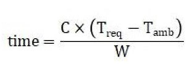 其中,time为烘干设备持续运行的烘干时长,C为烘干物品在升温过程中所需要的热量,Trep为预设的烘干新能源电池冲压配件所需要达到的温度,Tamb为烘干前的新能源电池冲压配件自身的温度,W为烘干机每秒钟所提供的热量。