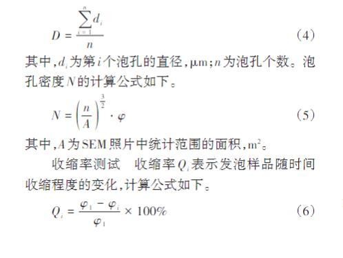 其中,A为SEM照片中统计范围的面积,m2。收缩率测试收缩率Qi表示发泡样品随时间收缩程度的变化,计算公式如下。