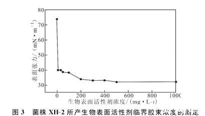 图3菌株XH-2所产生物表面活性剂临界胶束浓度的测定