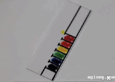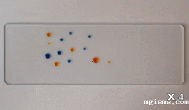 这个难度比较高,不过现象非常有意思。在这里使用的是含有丙二醇和水的液体食品色素,这些液滴经过不同程度的稀释。在非常洁净的玻璃片上,它们因为蒸发而产生表面张力的变化,从而出现彼此“追逐”的现象。详情: