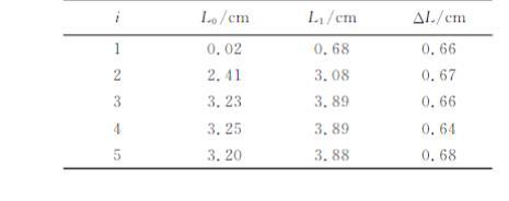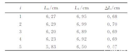 4)记录水膜刚好被拉破时标尺的读数L₁,计算得到弹簧的伸长量ΔL,实验结果如表1所示。