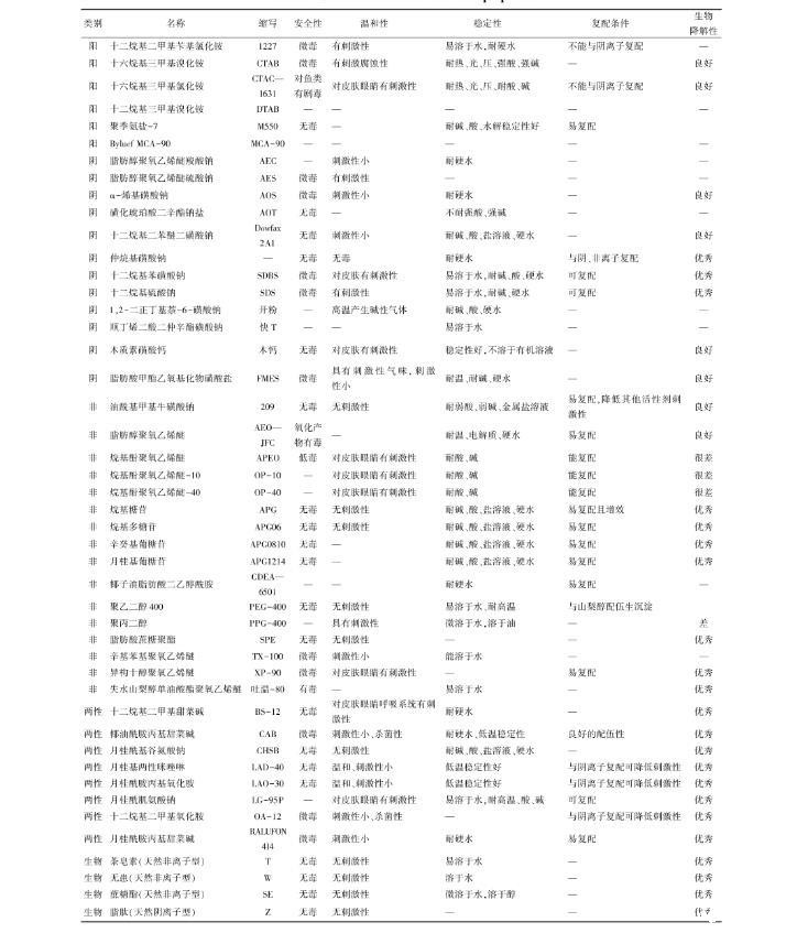 表1常见表面活性剂及其性质