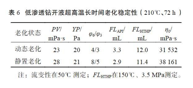 表6低渗透钻开液超高温长时间老化稳定性(210℃、72 h)