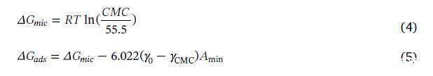 尽管对于是否应该修改Gibbs分析存在一些争论[19,20]。ΔGads和ΔGmic是由Rosen的方法计算得出的: