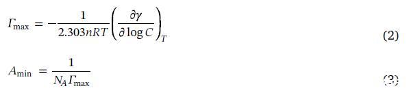 其中R和NA是气体常数和阿伏伽德罗数,T是绝对温度,对于离子表面活性剂溶液,n等于2,