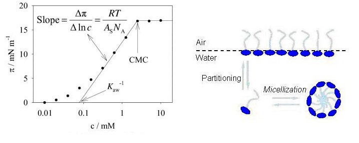 空气/水分配系数(Kaw)、真正的表面积(As)、临界胶束浓度(CMC)